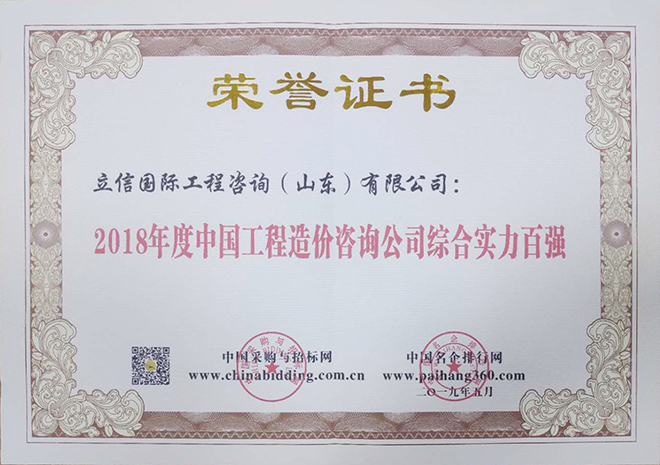 2018年度中國(guó)工程造價(jià)咨詢公司綜合實(shí)力百強(qiáng)