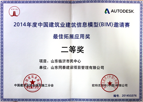 2014年12月,我單位在中國(guó)建筑業(yè)協(xié)會(huì)與歐特克軟件(中國(guó))有限公司聯(lián)合舉辦的2014中國(guó)建筑業(yè)建筑信息模型(BIM)邀請(qǐng)賽上獲得二等獎(jiǎng)。 山東同泰建設(shè)項(xiàng)目管理有限公司 2014年12月23日