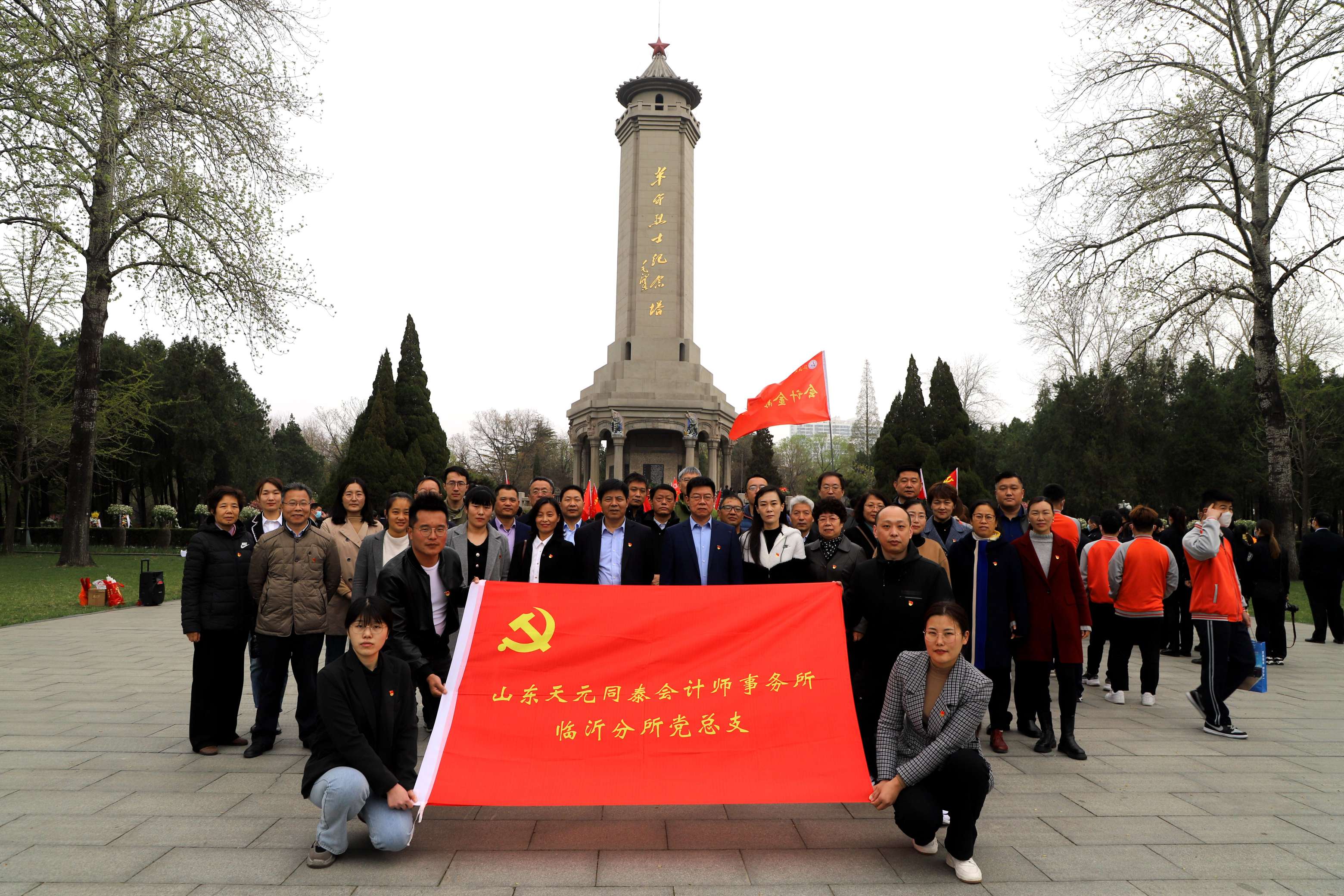 為深切緬懷革命先烈,傳承紅色基因,加強(qiáng)黨員黨性體驗(yàn)和政治忠誠教育,2021年4月1日,山東天元同泰會計(jì)師事務(wù)所臨沂分所黨總支組織40余名黨員赴華東革命烈士陵園參加市注冊會計(jì)師行業(yè)黨委組織的“學(xué)黨史 憶英烈 守初心 當(dāng)先鋒”清明黨性教育活動。 在革命烈士紀(jì)念塔前,黨員們集體向革命烈士紀(jì)念塔敬獻(xiàn)花籃,向烈士默哀,重溫入黨誓詞,深情緬懷革命先烈。隨后天元同泰黨總支組織黨員瞻仰和學(xué)習(xí)了“仰風(fēng)承志亭”、丁秋生、常恩多、劉炎烈士墓和沂蒙革命紀(jì)念館。 一段段水與火的革命歷程,一個個動人心弦的先烈故事,一幅幅感人至深的紅色沂蒙畫卷,使大家思想受到了震撼,心靈得到了洗禮。黨員們深切感受到黨和人民軍隊(duì)與沂蒙人民鑄就的水乳交融、生死與共的歷程,為共產(chǎn)黨人浴血奮戰(zhàn)、老區(qū)人民破家支前的感人事跡而感動,更為新時代沂蒙人民開拓奮進(jìn)、家鄉(xiāng)發(fā)生巨變而深深震撼。廣大黨員干部紛紛表示要繼承先烈遺志,傳承紅色基因,弘揚(yáng)愛國精神,不忘初心和使命,凝聚奮進(jìn)力量立足本職工作,充分發(fā)揮共產(chǎn)黨員先鋒模范作用,和全體同泰人一起用實(shí)際行動和優(yōu)異的成績向建黨100周年獻(xiàn)禮。