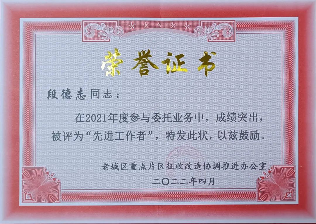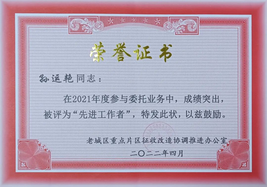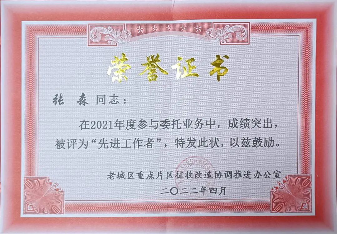 | 創(chuàng)優(yōu)爭先、干事創(chuàng)業(yè)--我集團張森等8名同志被市老城區(qū)推進辦授予“先進工作者”稱號 |