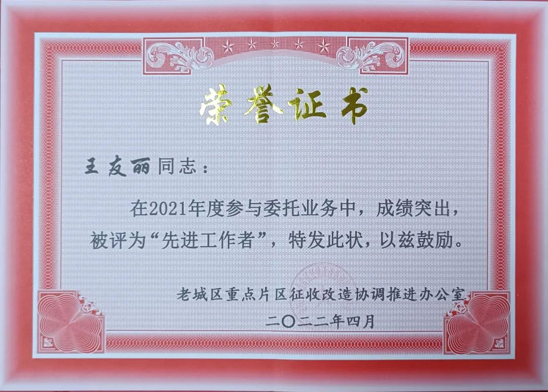 近日,臨沂市老城區(qū)重點片區(qū)征收改造協(xié)調(diào)推進辦公室對2021年度中介機構先進工作者進行了表彰,我集團張森、隋金凱、劉霞、王甲玲、段德志、王友麗、諸葛奉云、孫運艷共8名同志被授予“先進工作者”榮譽稱號。 臨沂市老城區(qū)重點片區(qū)征收改造協(xié)調(diào)推進辦公室負擔著我市老城區(qū)的征收改造和開發(fā)建設工作,我集團作為改造建設工作的中介機構秉承著獨立、客觀、公正的執(zhí)業(yè)準則,積極開展財務審計、拆遷評估、預算編制、工程咨詢、造價咨詢等各項業(yè)務。多年來,我集團各執(zhí)業(yè)機構的工作人員始終堅持以精益求精的專業(yè)精神、積極飽滿的工作熱情和嚴謹扎實的執(zhí)業(yè)作風來開展各項工作,“同泰”集團和“同泰”人先后多次獲得臨沂市政府、市住建局等政府部門和社會各界的表彰好評,為努力推動臨沂市經(jīng)濟社會發(fā)展貢獻自己的專業(yè)力量。