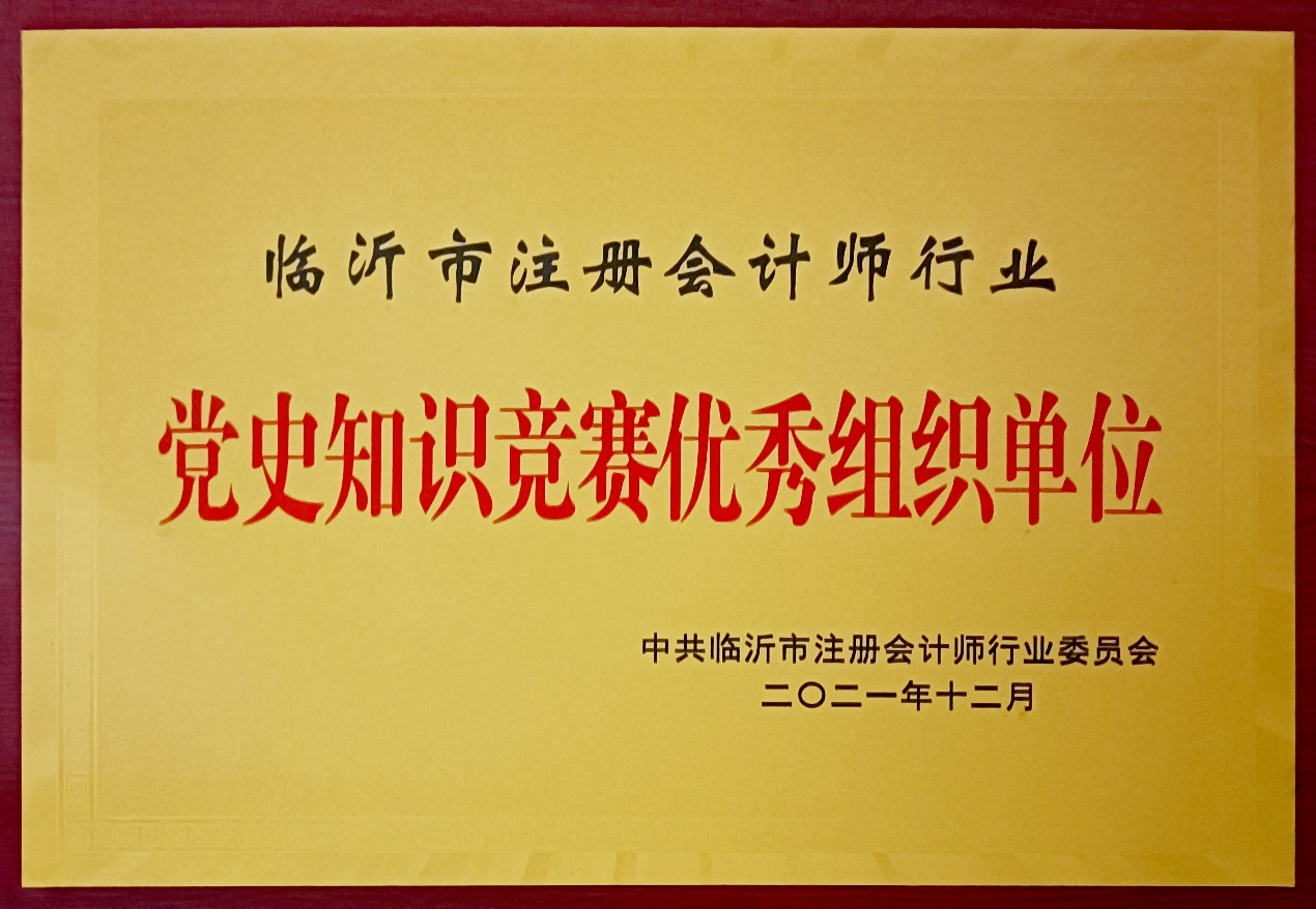 近日,臨沂市注冊(cè)會(huì)計(jì)師行業(yè)黨委表彰了部分行業(yè)黨組織,山東同泰管理咨詢(xún)集團(tuán)黨總支被授予“臨沂市注冊(cè)會(huì)計(jì)師行業(yè)先進(jìn)基層黨組織”和“臨沂市注冊(cè)會(huì)計(jì)師行業(yè)黨史知識(shí)競(jìng)賽優(yōu)秀組織單位”的稱(chēng)號(hào)。