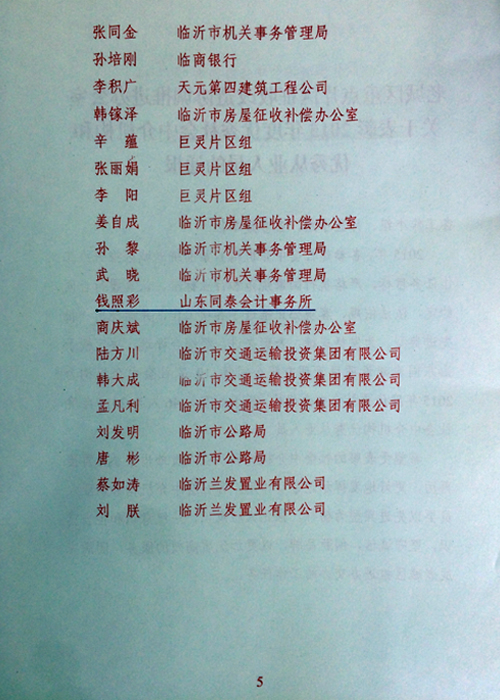 2015年,在臨沂市老城區(qū)重點片區(qū)征收改造協(xié)調推進辦公室領導下,我所選派業(yè)務骨干參與老城區(qū)征收改造和開發(fā)建設工作,發(fā)揚謙虛謹慎、愛崗敬業(yè)、干事創(chuàng)業(yè)、無私奉獻精神,圓滿完成了臨沂市老城區(qū)重點片區(qū)征收改造協(xié)調推進辦公室領導交辦的跟蹤審計、工程咨詢、評估等工作任務,展示出“同泰”人的水平和實力,為事務所創(chuàng)造經(jīng)濟效益。
