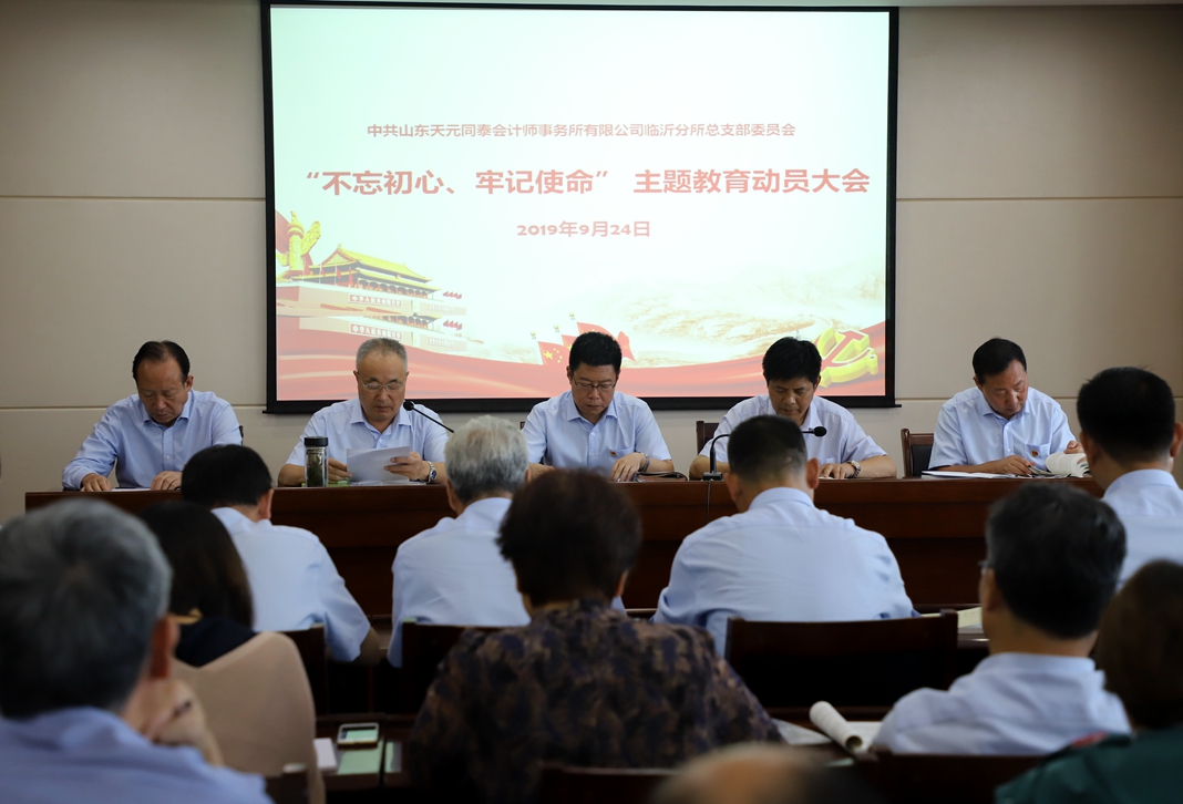 日前,中共山東天元同泰會計師事務所黨總支召開動員大會,在全所范圍內(nèi)全面啟動“不忘初心、牢記使命”主題教育活動。會上傳達學習了注冊會計師行業(yè)黨委和市行業(yè)黨委的有關文件,公布了事務所 “不忘初心、牢記使命”主題教育活動實施方案,總支書記裴波苓作了主題教育工作部署,對開展各項活動進行了安排。同時,組織全體黨員進行第一次集中學習。 9月12日,事務所黨總支、審計評估支部和項目管理支部支部書記與黨務工作者參加了省注協(xié)行業(yè)黨委召開的主題教育動員部署視頻會議。在省注協(xié)行業(yè)黨委下發(fā)主題教育實施方案后,事務所黨總支立即召開了總支擴大會議進行學習,對如何開展主題教育活動進行了安排,研究并制訂了實施方案。總體要求是以深入學習習近平新時代中國特色社會主義思想為根本任務,結(jié)合事務所實際深入貫徹“守初心、擔使命,找差距、抓落實”的總體要求,以事務所脫鉤改制20周年為契機,推動事務所黨員和從業(yè)人員全面系統(tǒng)學習貫徹習近平新時代中國特色社會主義思想,教育引導全體人員發(fā)揚革命傳統(tǒng)和優(yōu)良作風,忠誠擔當,誠信執(zhí)業(yè),再創(chuàng)佳績。具體工作安排要結(jié)合本事務所和黨員實際,創(chuàng)造性的落實理論學習教育、調(diào)查研究、檢視問題、整改落實具體任務。