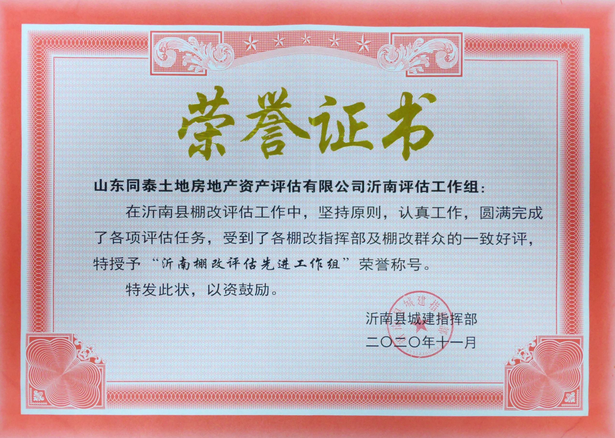 | 喜報 | 同泰評估獲“沂南棚改評估先進(jìn)工作組”等榮譽稱號 |