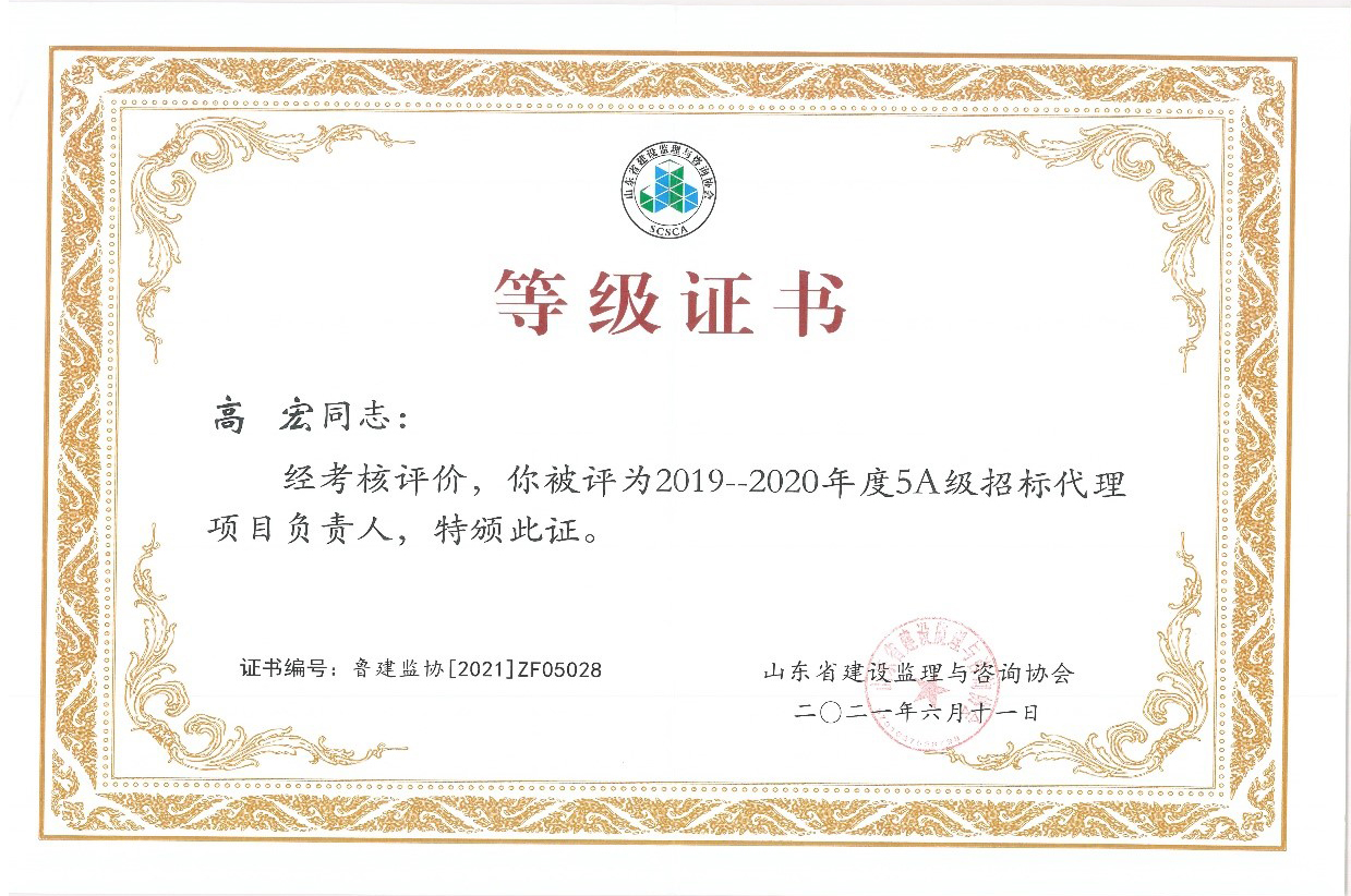 | 我公司獲得山東省首批5A級(jí)監(jiān)理企業(yè)、5A級(jí)招標(biāo)代理機(jī)構(gòu)、4A級(jí)全過(guò)程工程咨詢單位 |